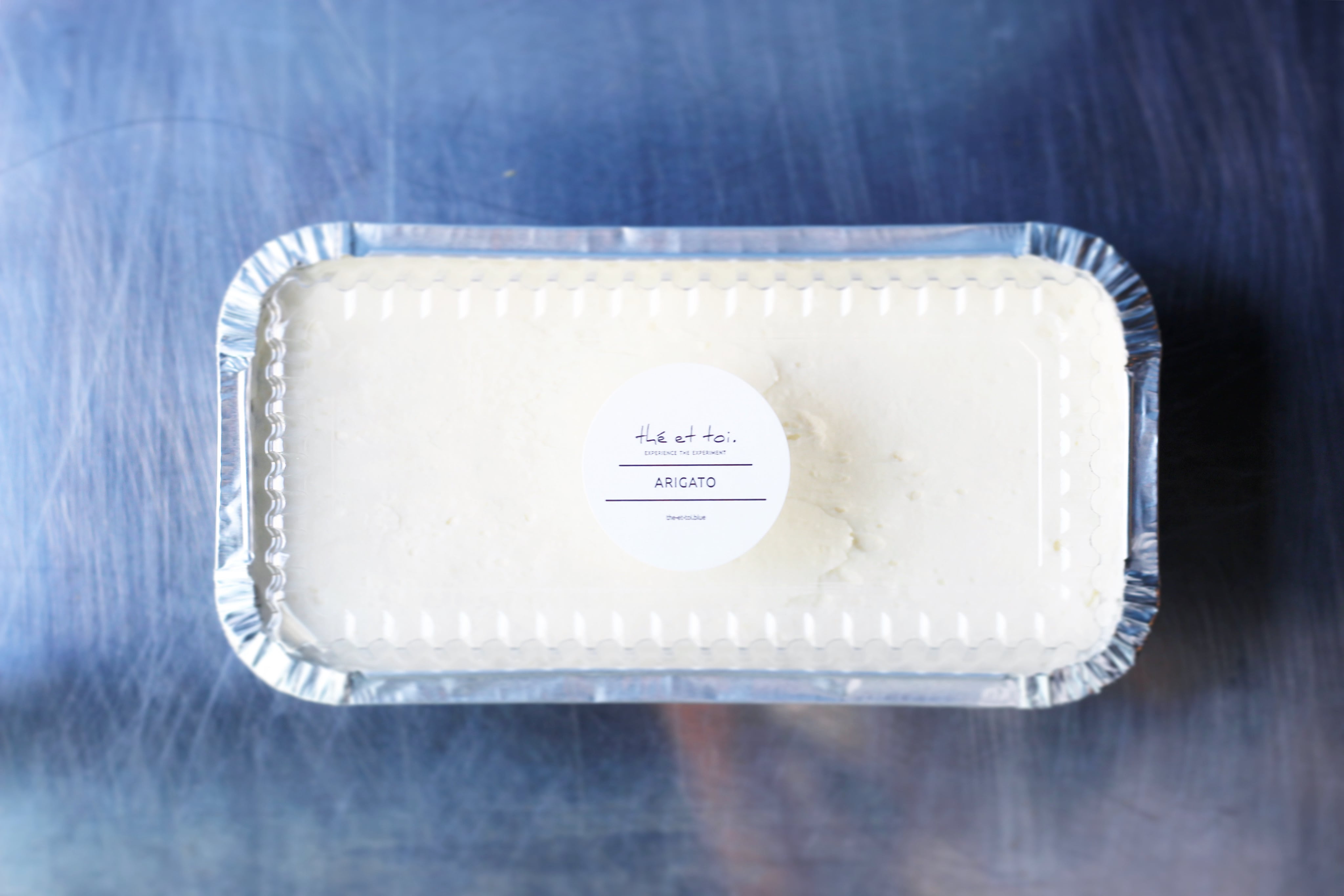 パウンド型のアルミトレイで焼き、冷凍便でお届けします。